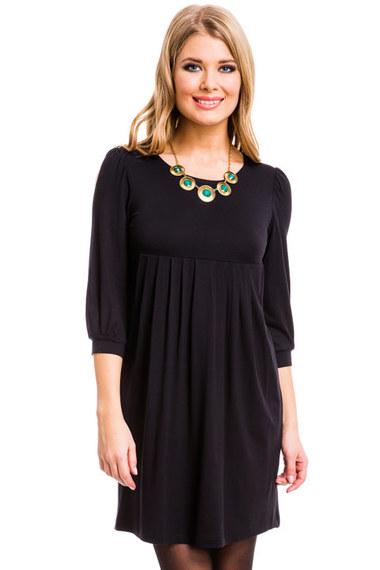 Элегантное повседневное платье свободного кроя, с подолом, украшенным складками от груди. Рукава 3/4 так же свободного кроя, с манжетами на концах. Модель с округлой горловиной позволяет выбрать украшения различной формы и фактуры.