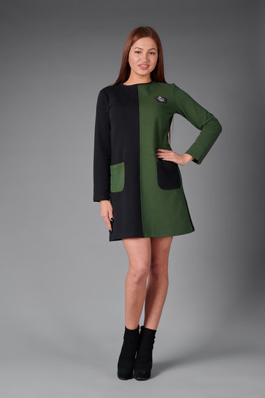 Двухцветное платье: черный и хаки Трикотажница